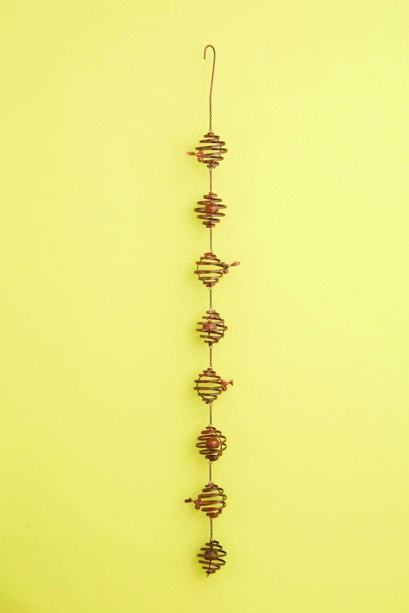 Show your appreciation for tiny pollinators with our Flamed Bee Spiral with Bells Hanging Ornament. Long and slender, it features a cascade of shapely hives, along with delicate honeybees and rounded bells with stylized clappers. Perfect for the porch, patio, or garden, it also makes a fantastic and unique gift for beekeepers. Like other hanging ornaments from the Happy Gardens collection, this one has been individually handcrafted, and will bring lasting beauty to any outdoor setting.