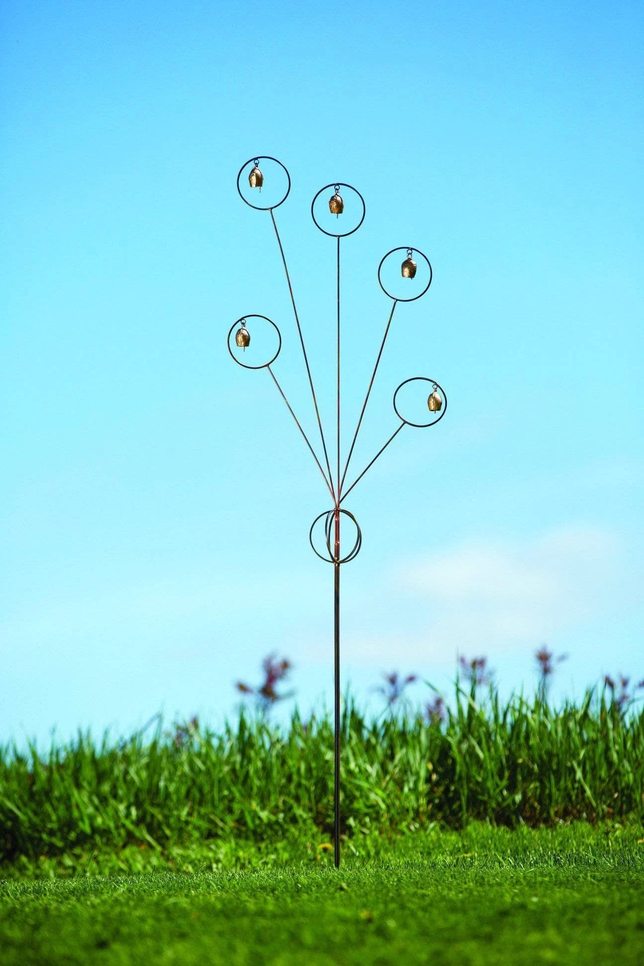 Plant elegance and let joy blossom. Our Flamed Bells Garden Stake pleases the eyes and ears alike, with a timeless circular motif and an array of five bells, which emit lovely sounds as breezes caress.