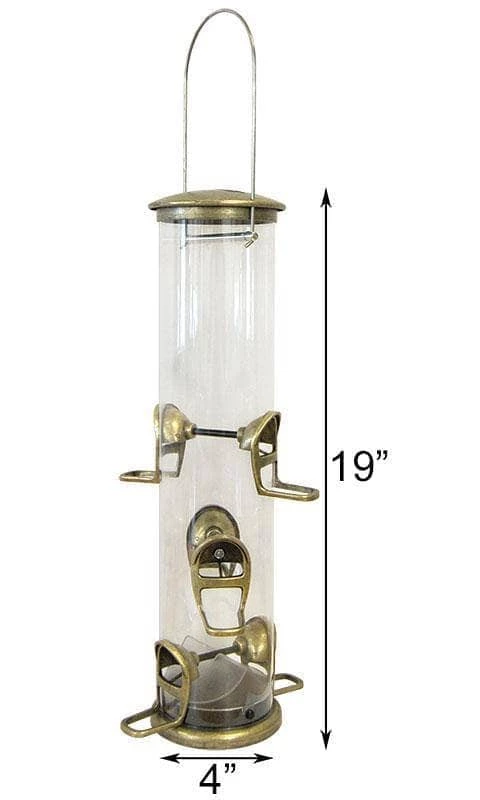 Its UV stabilized, polycarbonate reservoir and metal accents enhance the quality of this feeder, creating a durable unit you may enjoy for several seasons. Invite birds into your yard with this Antique Brass Big Tube Wild Bird Feeder.
