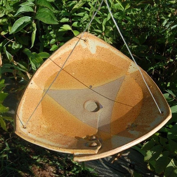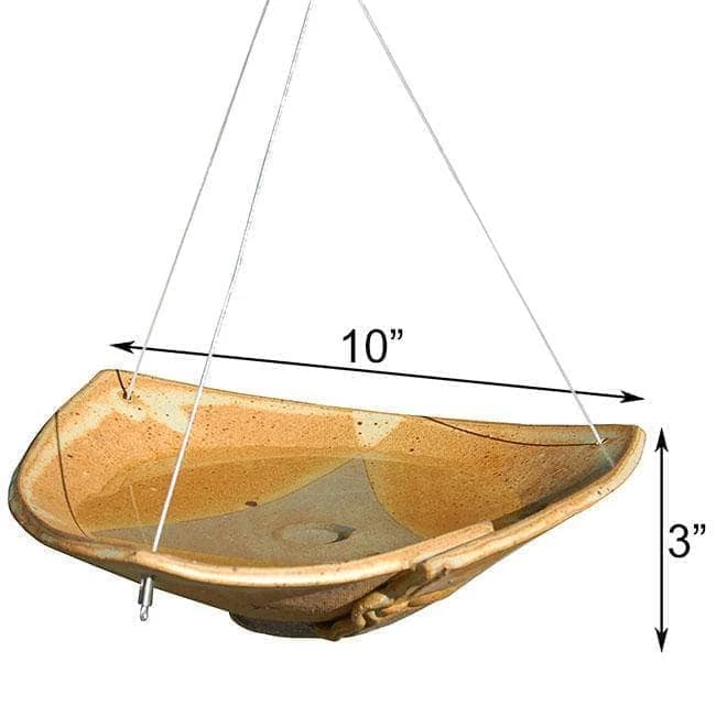 A durable, attached metal cable makes it simple to hang this bath from a branch or bracket, while its flattened base section rests on a level surface. Each piece is handcrafted on a potter’s wheel, and fired to 2400° Fahrenheit for a weather resistant and beautiful item.
