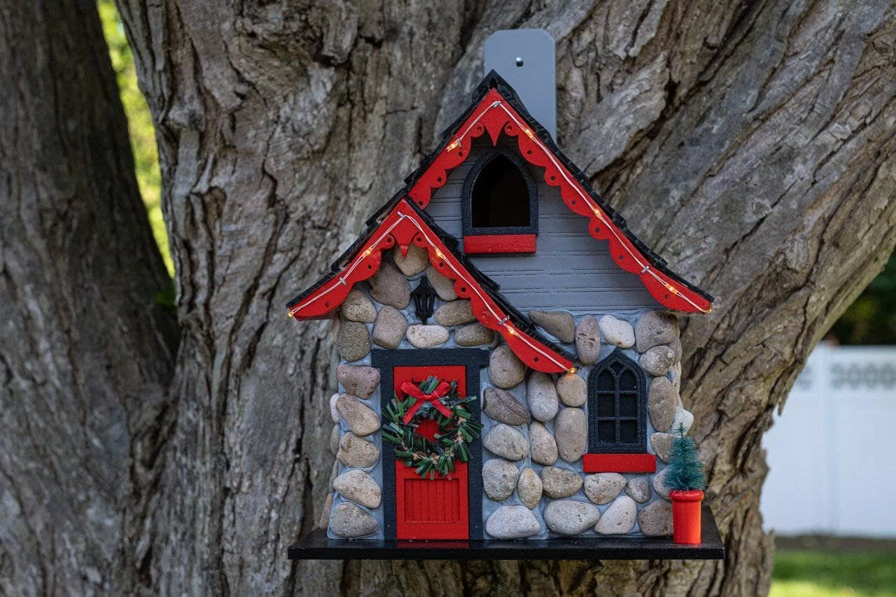 Charlevoix stone Christmas cottage is inspired from the island known for its stone windmills, historic buildings, and coastline views in northern Michigan. What better way to celebrate the holiday season than with this adorable decorated led birdhouse with its magical appearance?