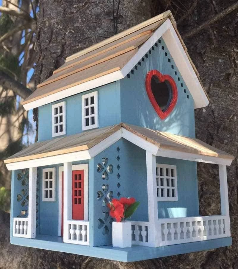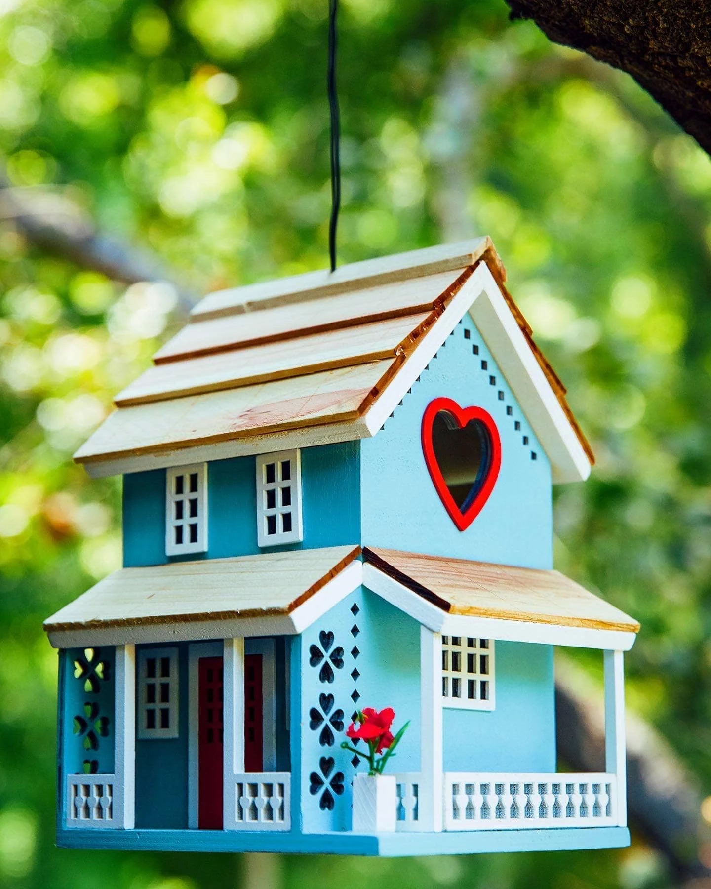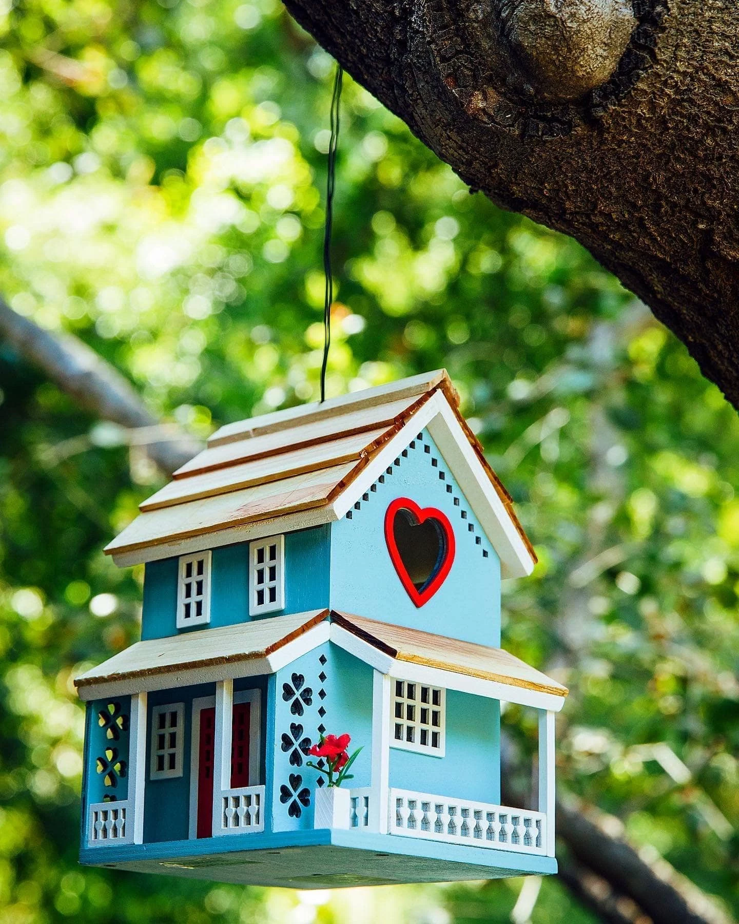 - DESIGNED TO MAKE BIRDS HAPPY – Our decorative bird houses are fully functional and intended for outdoor use and is hand crafted. A 1.25” opening, ventilation, drainage, an unpainted interior. The shingles protect the house from the elements, giving the birds and the nest a comfortable home. We do not use any pressure treated wood or apply any harmful chemicals and use an outdoor, non-toxic, water based paint.