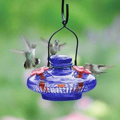 Hang this feeder from the included 4.5″ metal hanger, or attach the 2.25″ metal “S” hook to the top of the hanger for more display options. Turn your yard into a beautiful bird garden using the Blue Bloom Hummingbird Feeder.