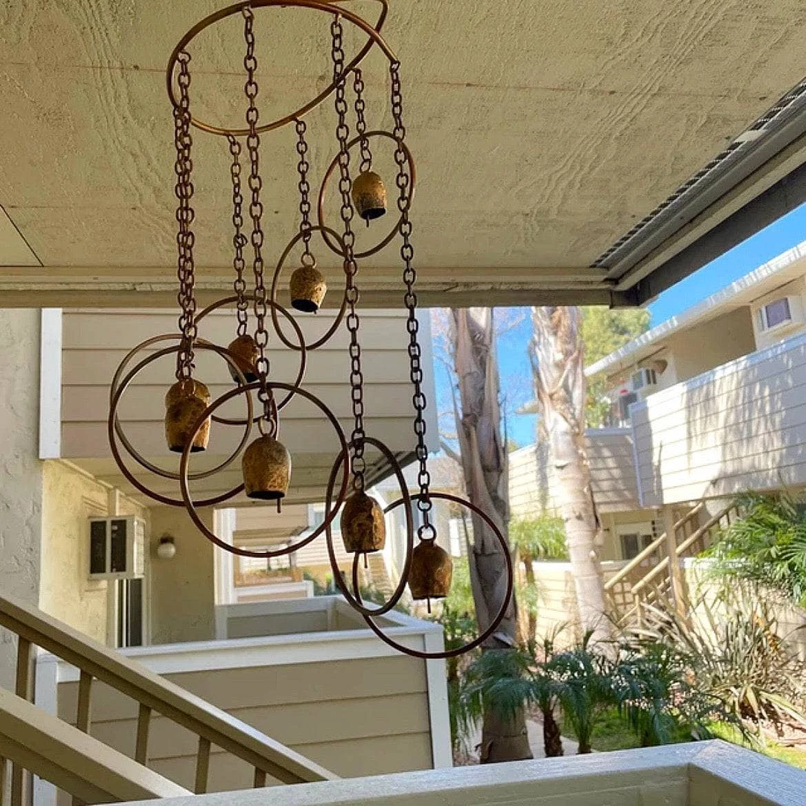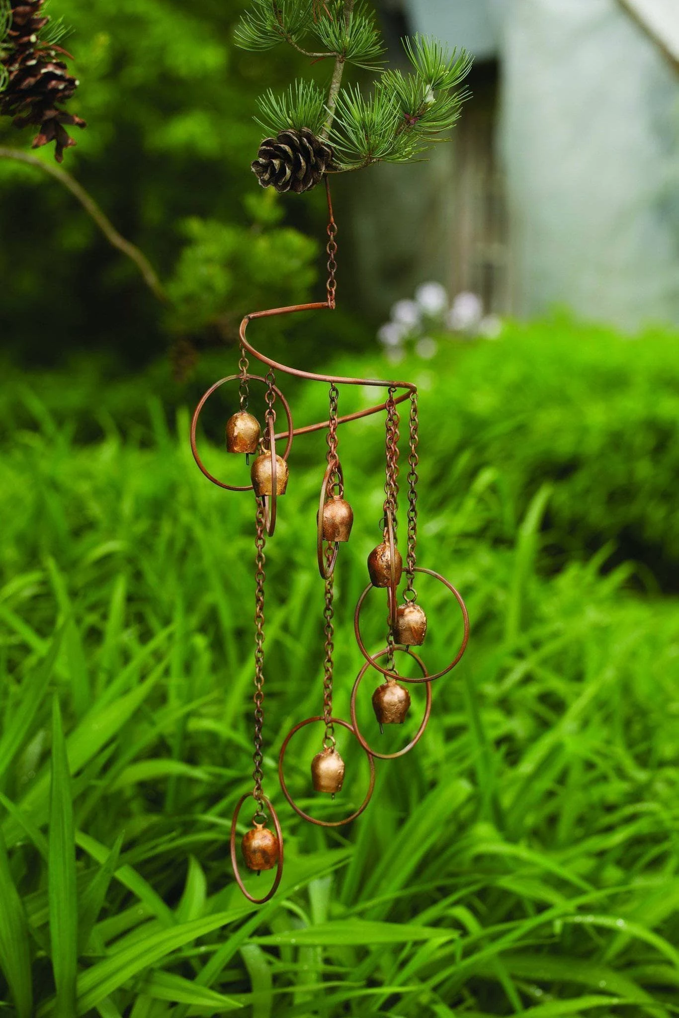 Whether it’s hanging from your favorite tree or simply placed on your porch, this Circle with Bells Spiral Mobile is sure to catch any visitor’s attention. It’s understated elegance will bring a touch of enchantment to your space–and of course, it sounds just as pretty as it looks.