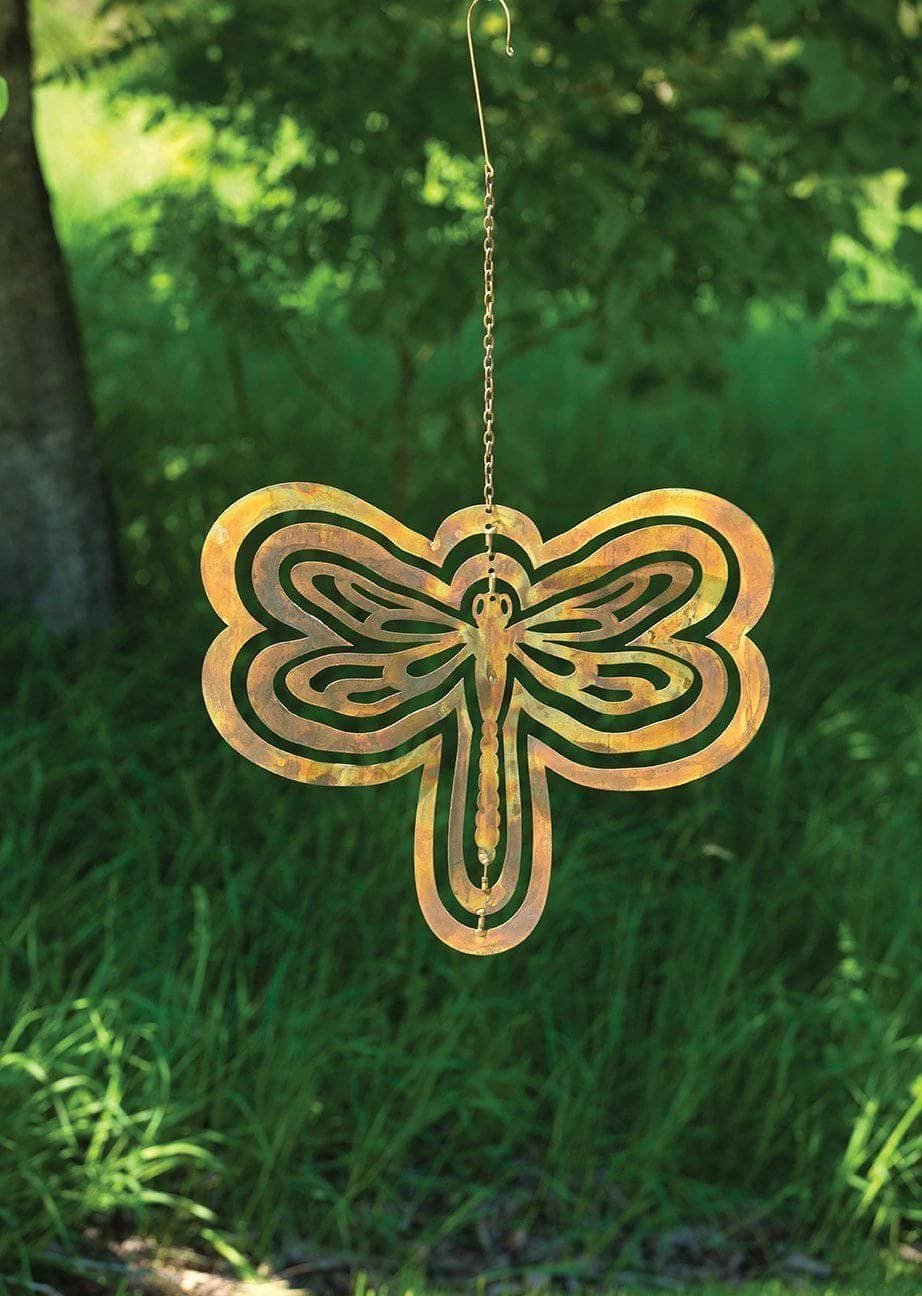 Celebrate a favorite garden guest while adding color and motion to your surroundings. Our Flamed Cutout Dragonfly Hanging Ornament is a favorite, thanks to a beautifully detailed central dragonfly complete with lacy wings. Two shapely frames surround the dragonfly, creating a fantastic three-dimensional effect by spinning and swaying as breezes blow. The flamed metal finish provides a soft, iridescent glow that’s simply stunning. Like all ornaments from our Happy Gardens collection, this piece has been individually handcrafted, and will bring lasting beauty to your home’s surroundings.