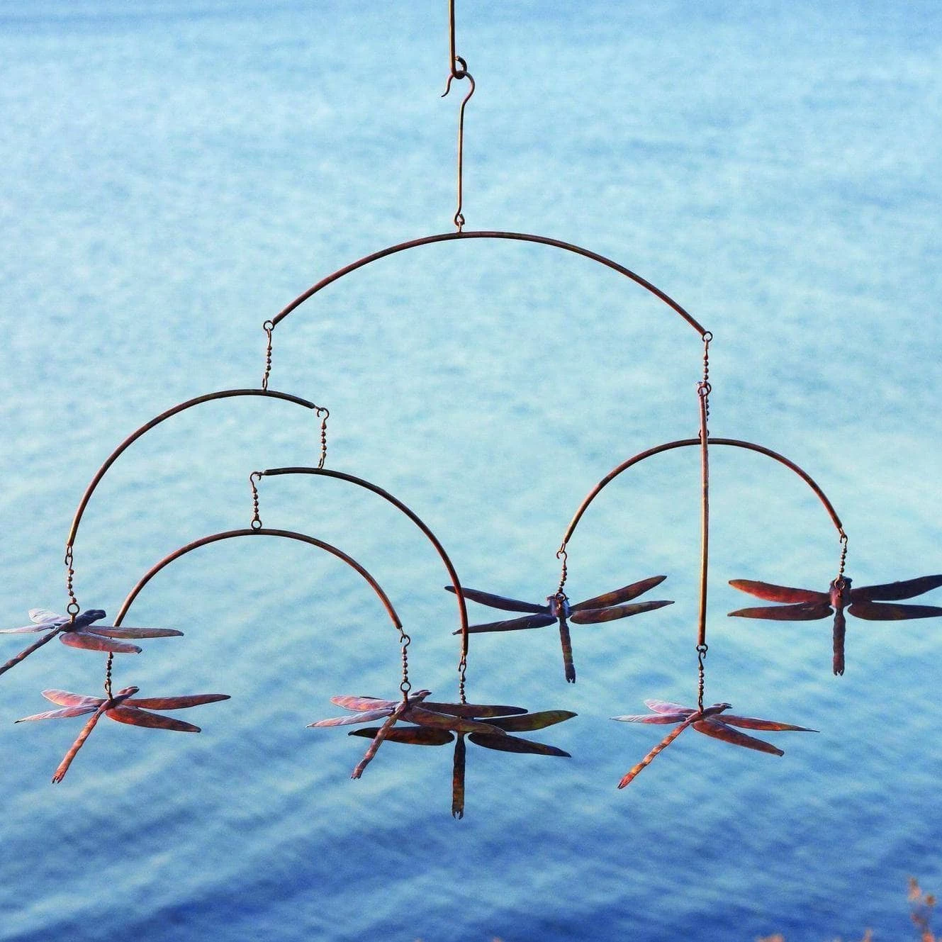 In China, the dragonfly is considered a symbol of prosperity, harmony and good luck. Who wouldn’t want to invite all those good vibes into their home and garden? Capture that positive spirit with our Dragonflies Mobile, which is a cinch to hang and care for. This piece is finished in a flamed steel, making it as durable as it is pretty. Like all Happy Gardens items, this mobile is individually handcrafted and makes a perfect gift.