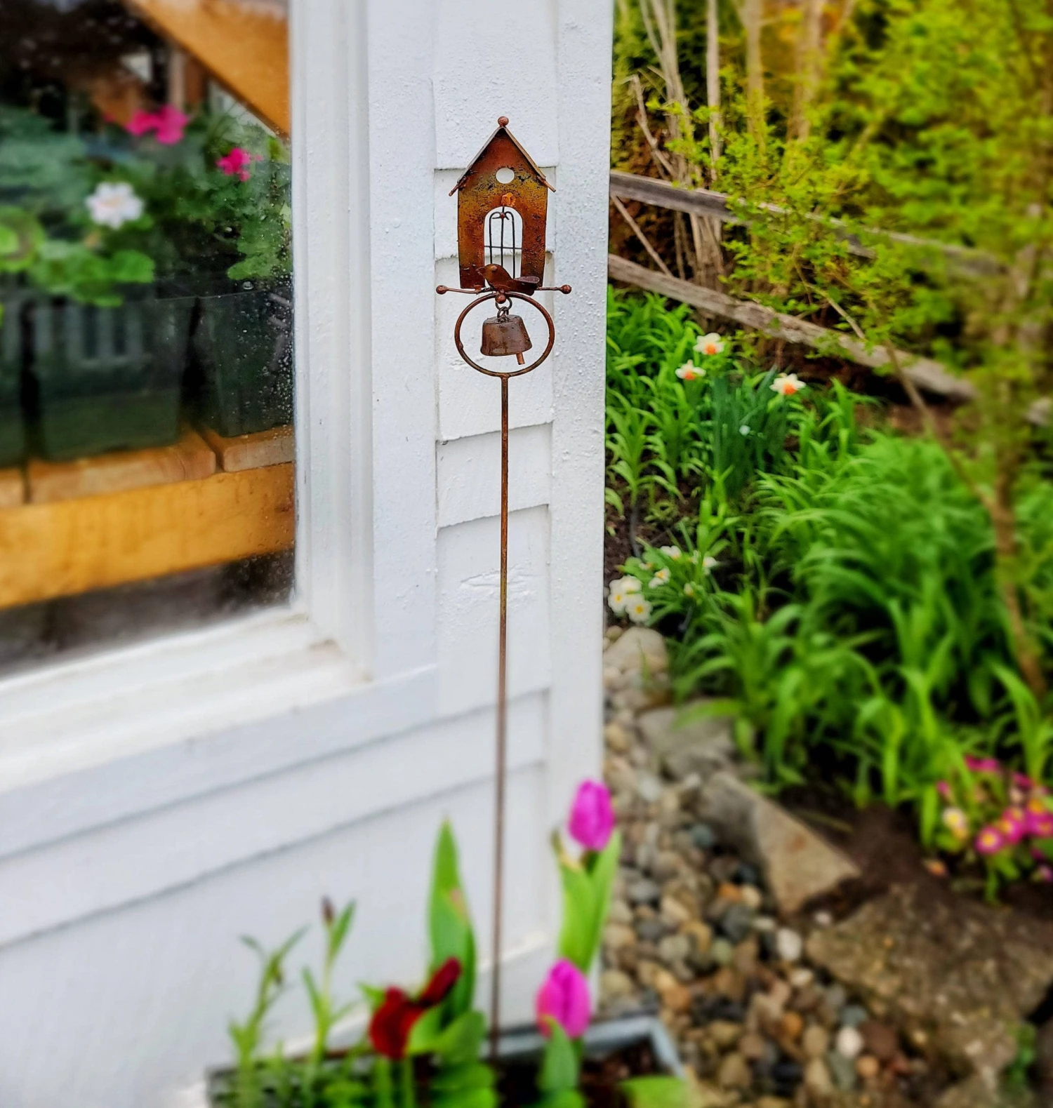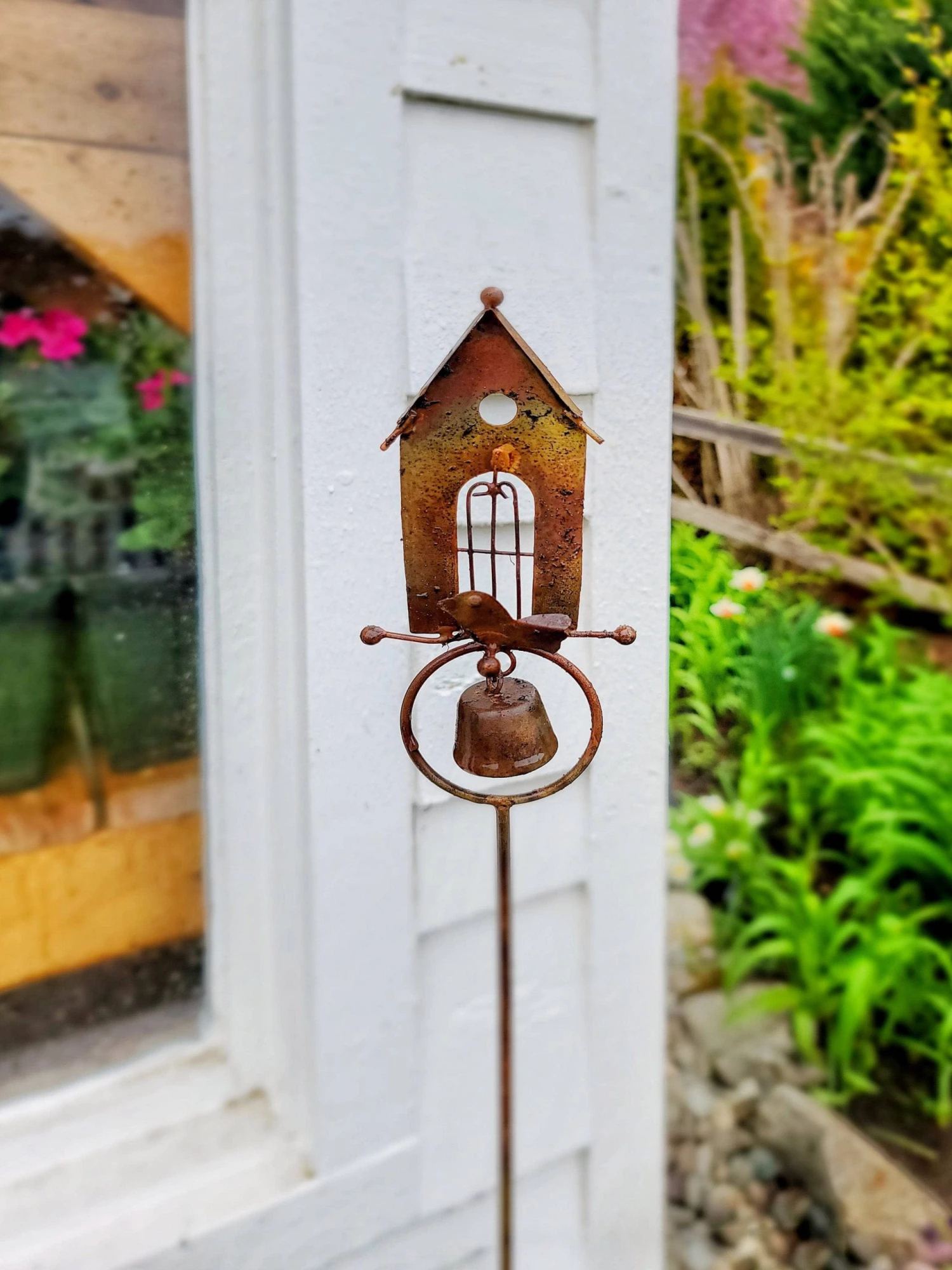 Alone or in groups, these whimsical beauties add an enchanting touch to any outdoor space! Our Bird Houses Garden Stakes come in assorted styles – yet each offers some similarities. Cheerful birds peek out from their lovely little domiciles, adding a sense of sweetness to your outdoor space. Each stake includes a single sculpted bell, which offers a pleasing chime whenever breezes blow. Like all décor from our Happy Gardens collection, this garden stake has been individually handcrafted, and will bring lasting beauty to any outdoor space.