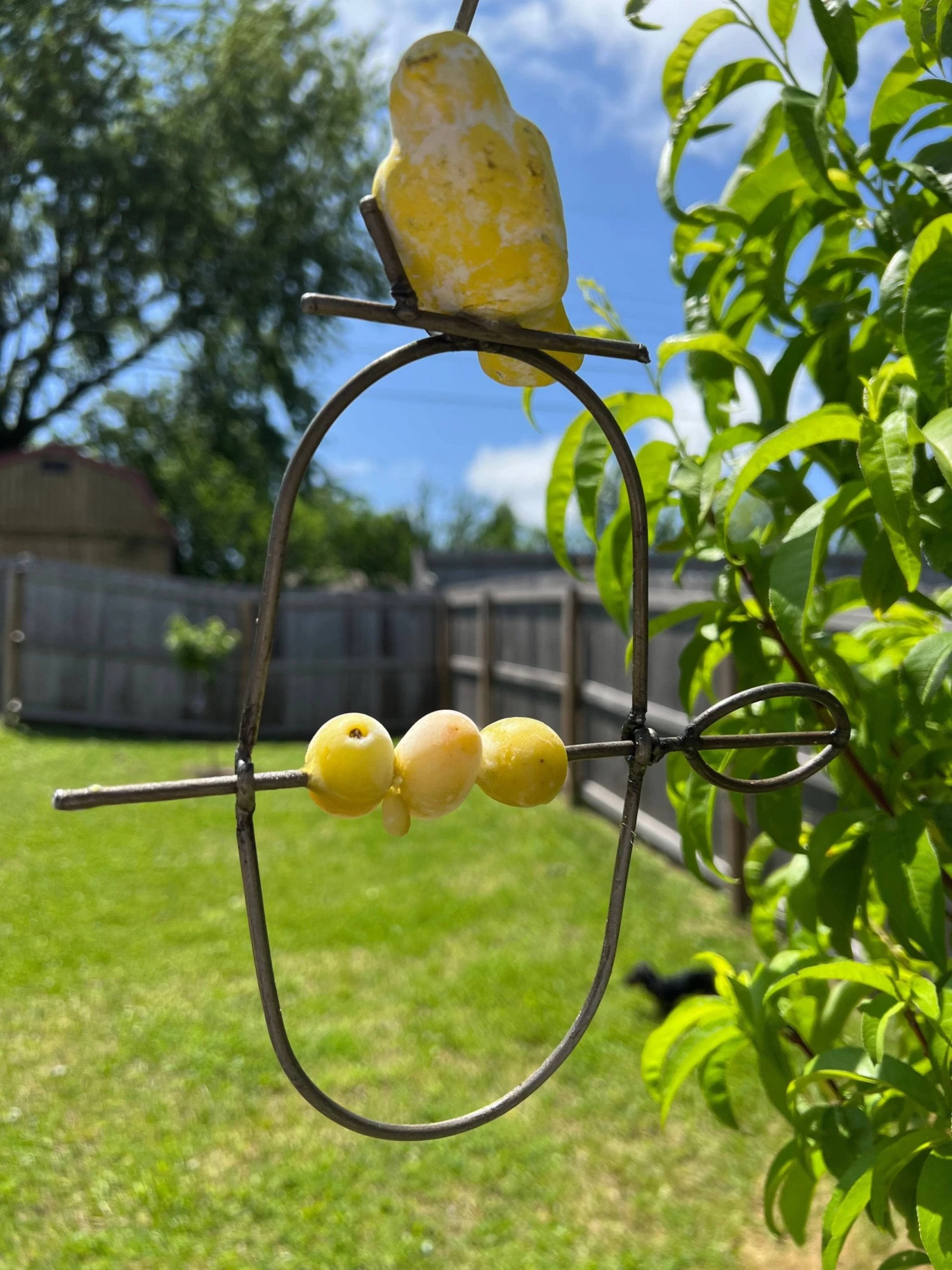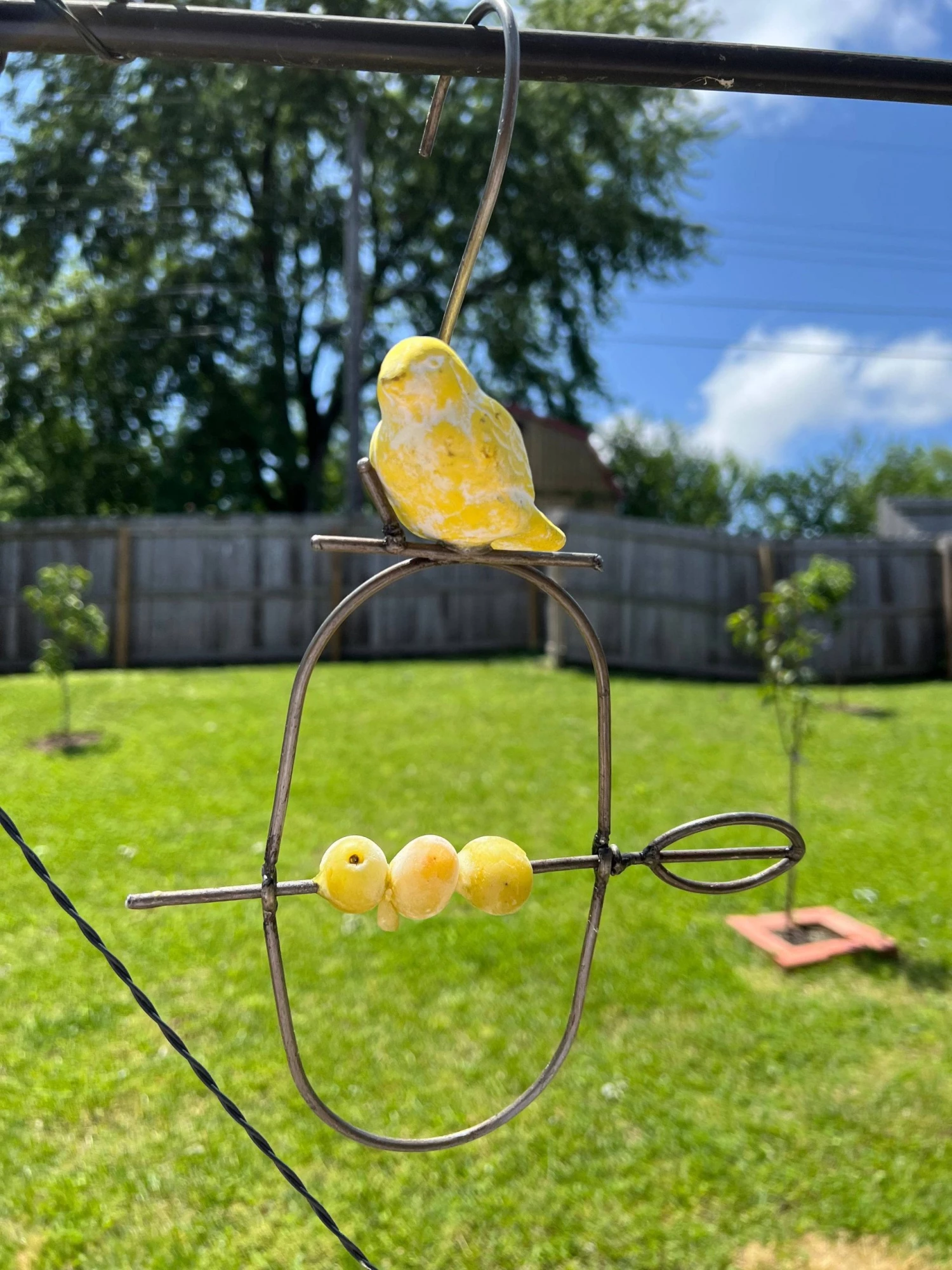If you want to encourage birds to visit your home on a regular basis, then you’re going to want to pull out all of the stops. This Hanging Bird Fruit Spear allows you to offer aviators a sweet treat in style. Simple but cute, this best-selling accessory is easy to use and clean, and will hopefully bring breathtaking birds to your backyard right away! As always, this Happy Gardens product has been individually handcrafted and designed to last.