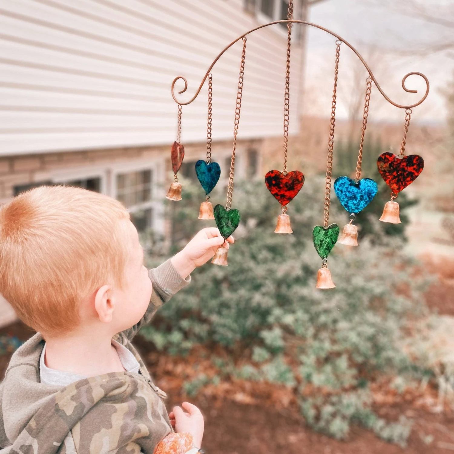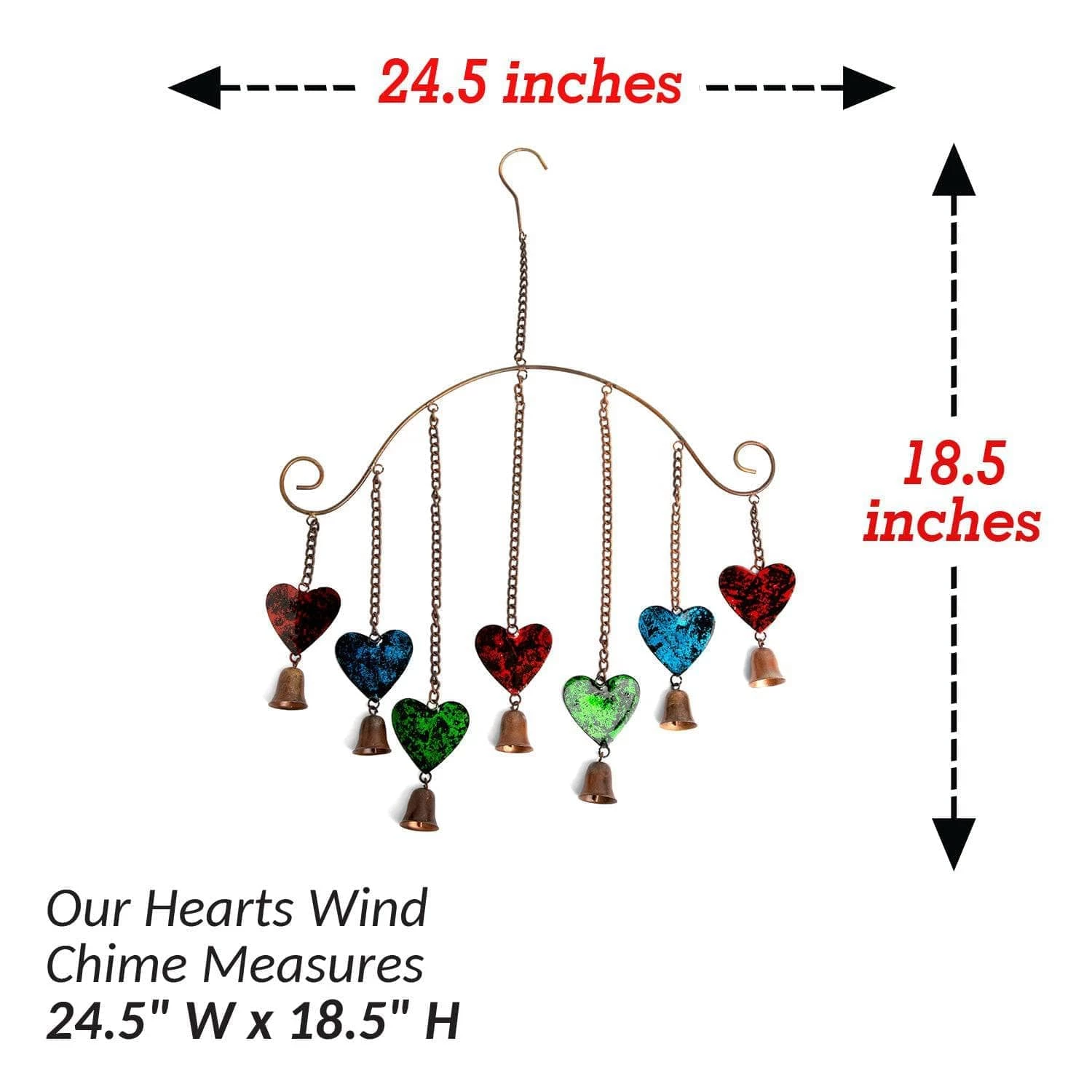 Fall in love with your outdoor space all over again with this lovely wind chime. Charming by design, this piece is adorned with seven handcrafted hearts in breathtaking jewel tones like ruby, sapphire and emerald. Hang it from a verdant tree, a shady porch… or even your living room! It’s that cute. Plus, this piece, like all our wind chimes, has been carefully handcrafted to ensure a long-lasting, high-quality product.