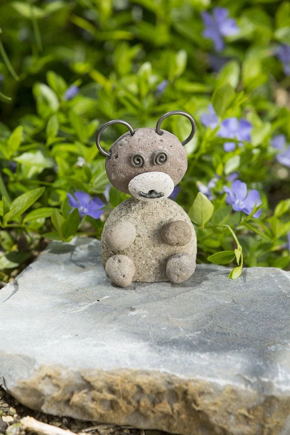 The smallest bear in our garden statue collection, this little guy is irresistibly cute. Small enough to fit in your hand, he’d look great nestled in a small planter, sitting on your bistro table or even serving as a paperweight while you get some work done outdoors. Made from an unexpected mix of river stones and forged steel, your friends and family will squeal with delight when they see this handcrafted bear for the first time.