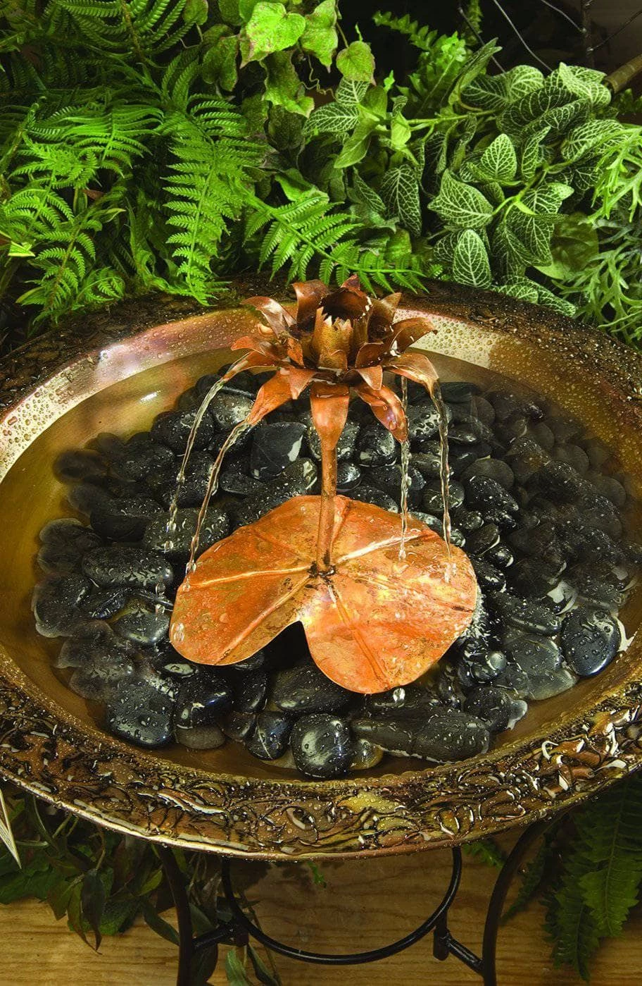 Bring peace and serenity to your garden with our Lotus Flower Dripper Fountain. This topper turns your basic bird bath or pond into a true fountain with flowing water. Made from solid copper, this piece looks great in every style of home and garden. Plus, it’s frustration free, and a UL-approved pump is included. Like every fountain we’ve selected for this Happy Gardens collection, this product has been individually handcrafted.
