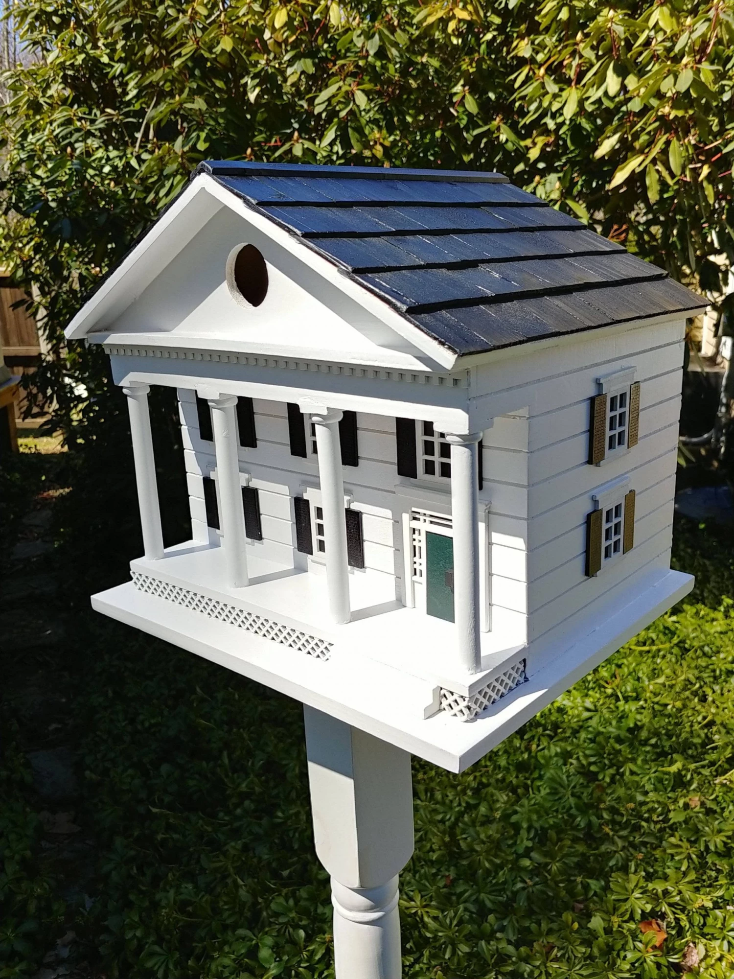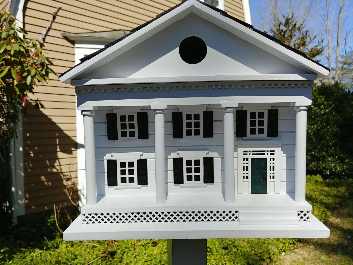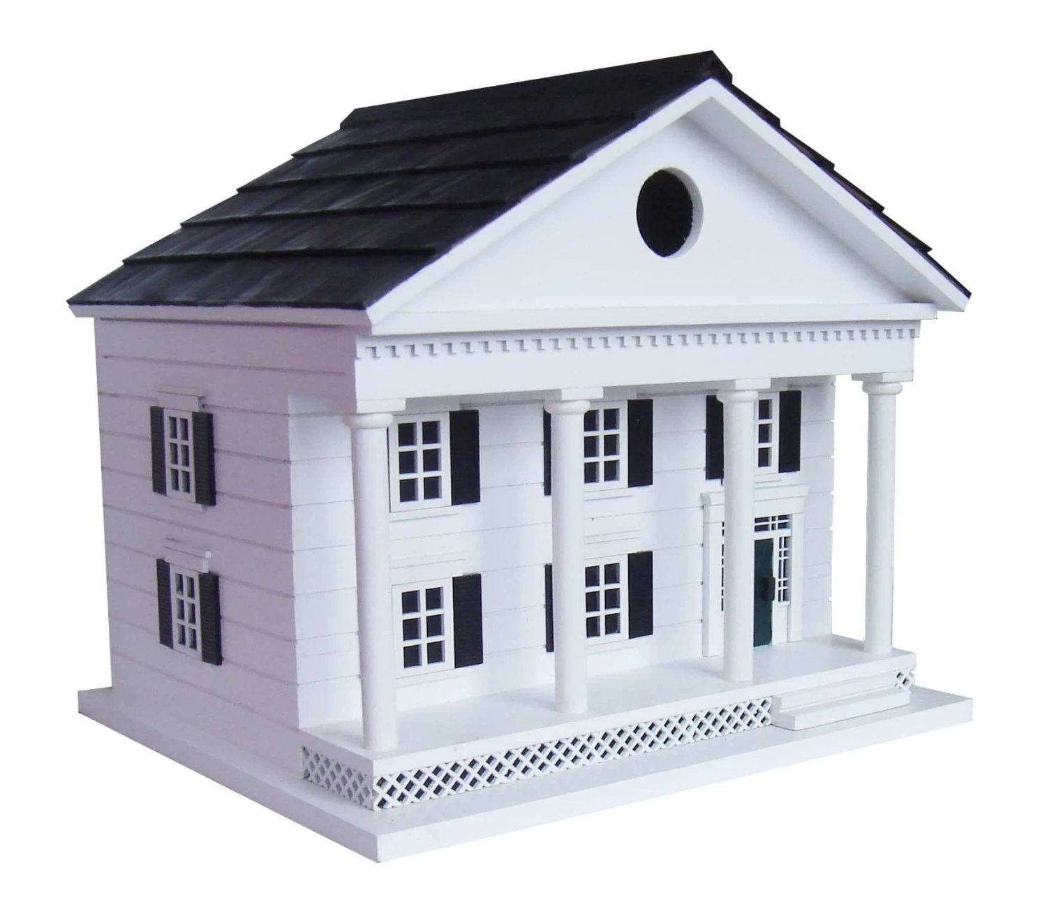 This classic Greek Revival, the Madison Manor birdhouse is the perfect residence for woodpeckers, wrens, swallows and bluebirds. This grand home has amazing details including; clapboard siding, Doric columns & classic pediments.