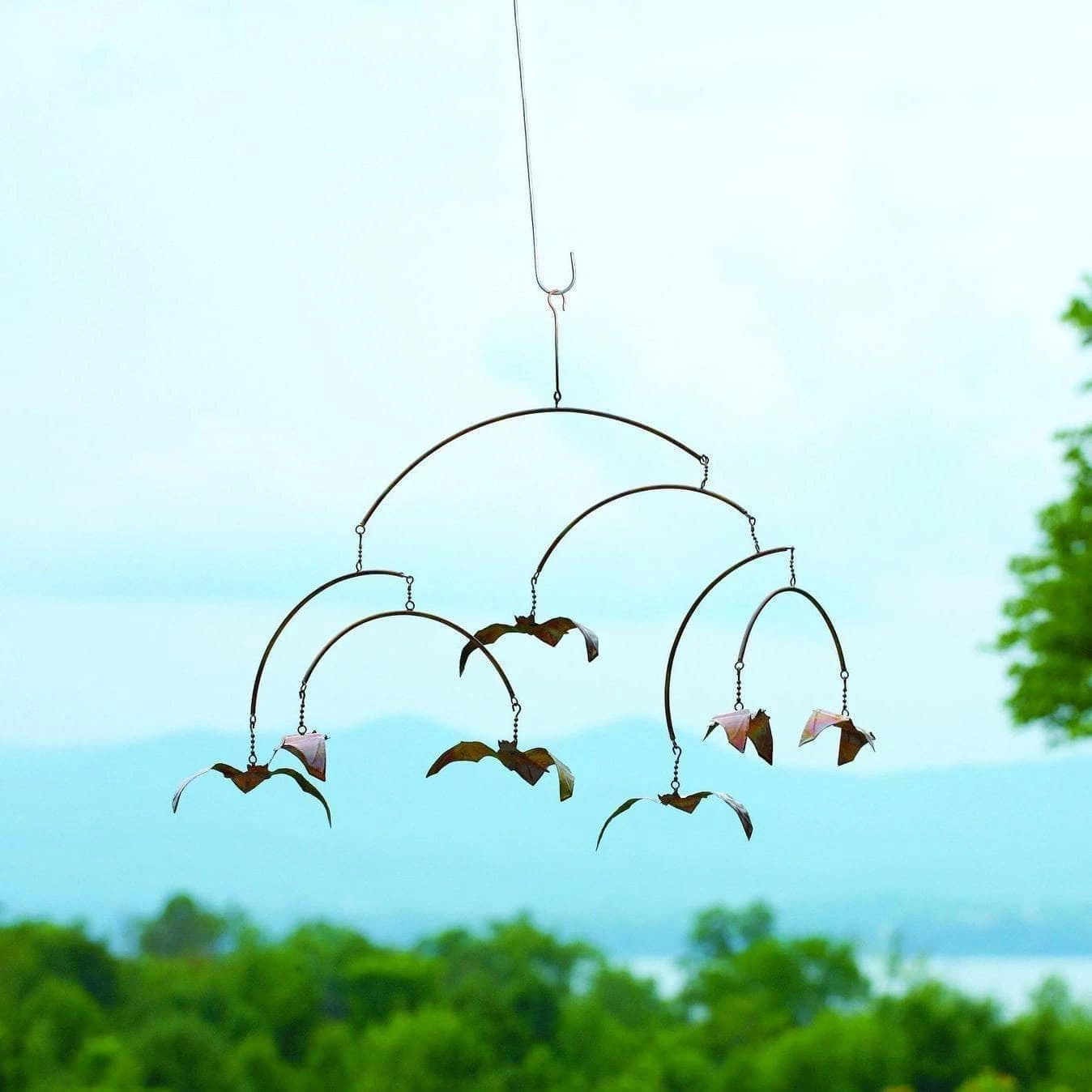 Love bats? So do we! Among nature’s most fascinating – and important – creatures, these nighttime visitors are sometimes hard to see. Celebrate their graceful presence even during daylight hours with our Flamed Bats Hanging Mobile, which offers a perfectly balanced profile, a touch of color, and mesmerizing movement. Like other Happy Gardens hanging mobiles, this one has been individually handcrafted, and will bring lasting beauty to any landscape.