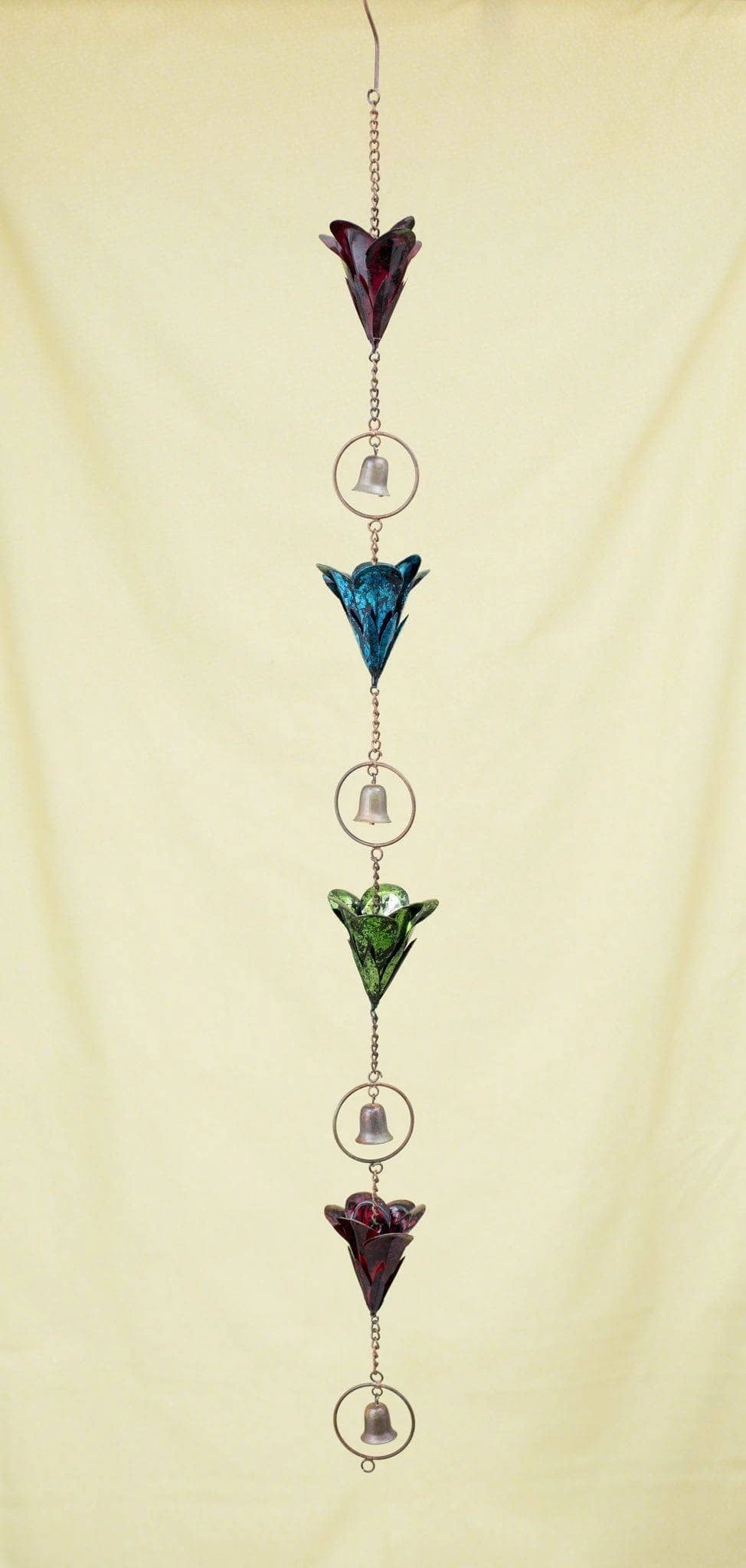 Spring isn’t forever. But this ornament is. So enjoy the vibrant flowers of our Multicolor Flower Hanging Ornament 365 days a year. The ornament patinated sapphire, ruby, and emerald lilies add country charm to any home. In between them, little bells ring a sweet song whenever the breeze blows through. Perfect for adding a little color to a garden or deck!