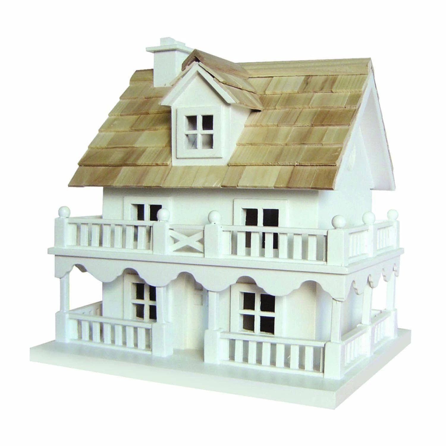 Pine shingles top this classic avian Novelty Cottage residence available in white. Perfect for small cavity dwellers, wrens, finches, chickadees and titmice. Removable back wall and two separate cavities with side entries. Constructed of kiln-dried hardwood. Durable exterior grade finish. Comes with a bracket for easy mounting.