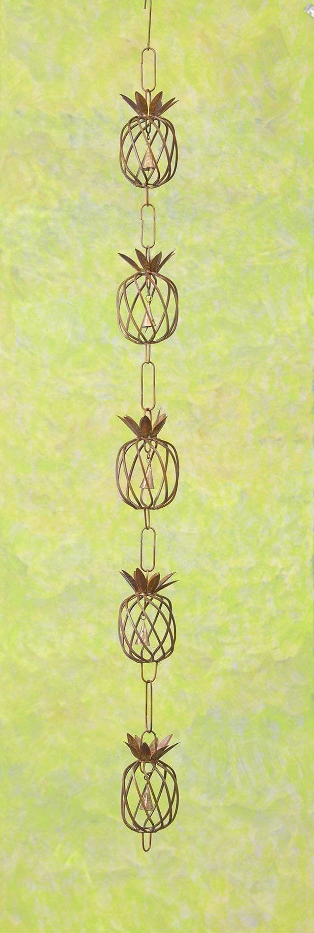 If you like pina coladas… you’ll love this pineapple hanging ornament! Featuring five handcrafted, woven metal, pineapples—each of which houses a sweet little bell—this piece will transport you and your guests to a sandy beach in the South Pacific for a fraction of the cost! Hang this piece from a palm tree… or a pine tree! After all, summer is a state of mind.