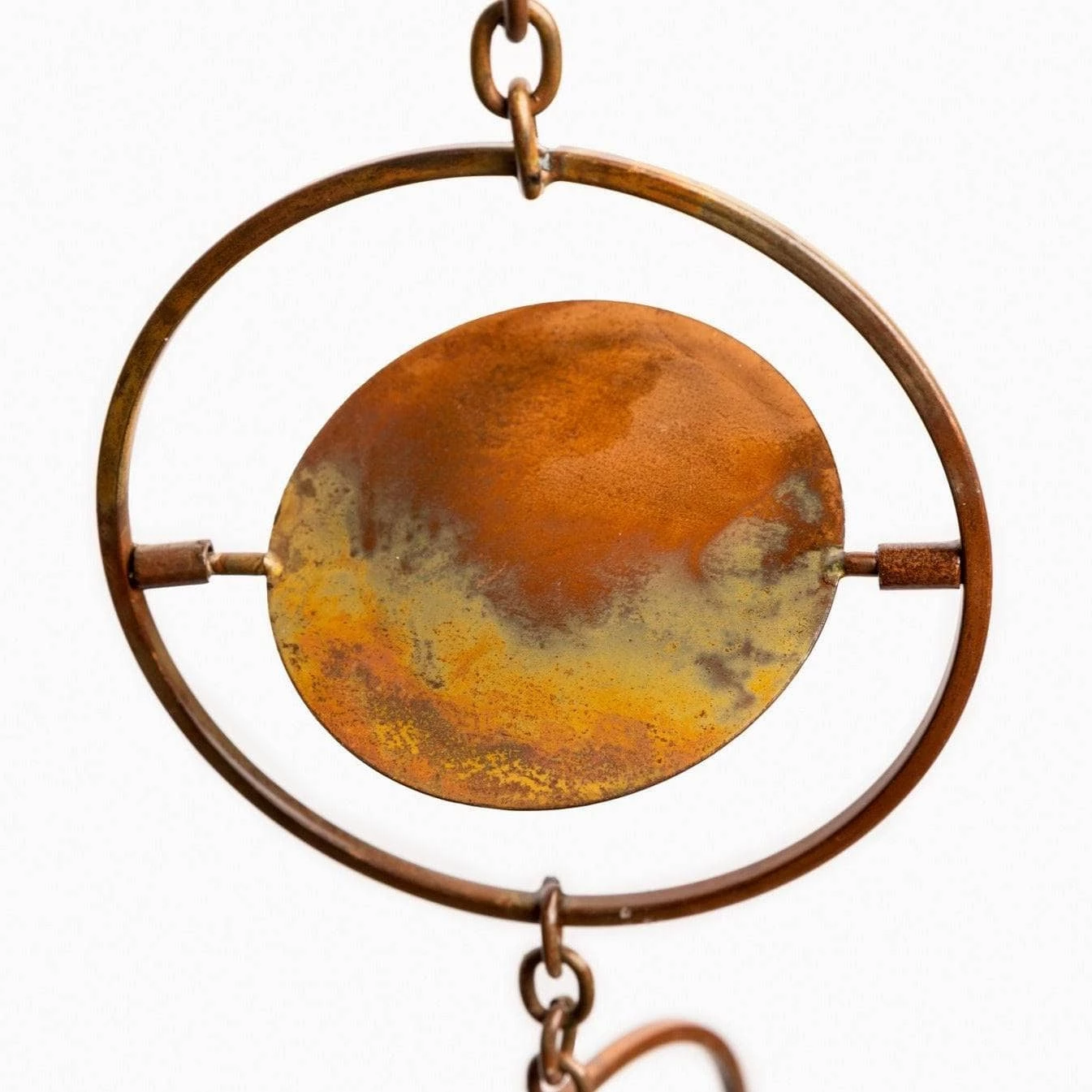 A flash of subtle color; a drifting, peaceful motion: Our Flamed Circles Ornament brings a tranquil feeling to any outdoor space while offering a contemporary appearance. Solid, circular discs move gently within circular frames, reflecting the wonderful, endless nature of life. Like other hanging ornaments from the Happy Gardens collection, this one has been individually handcrafted, and will bring lasting beauty to a variety of settings.