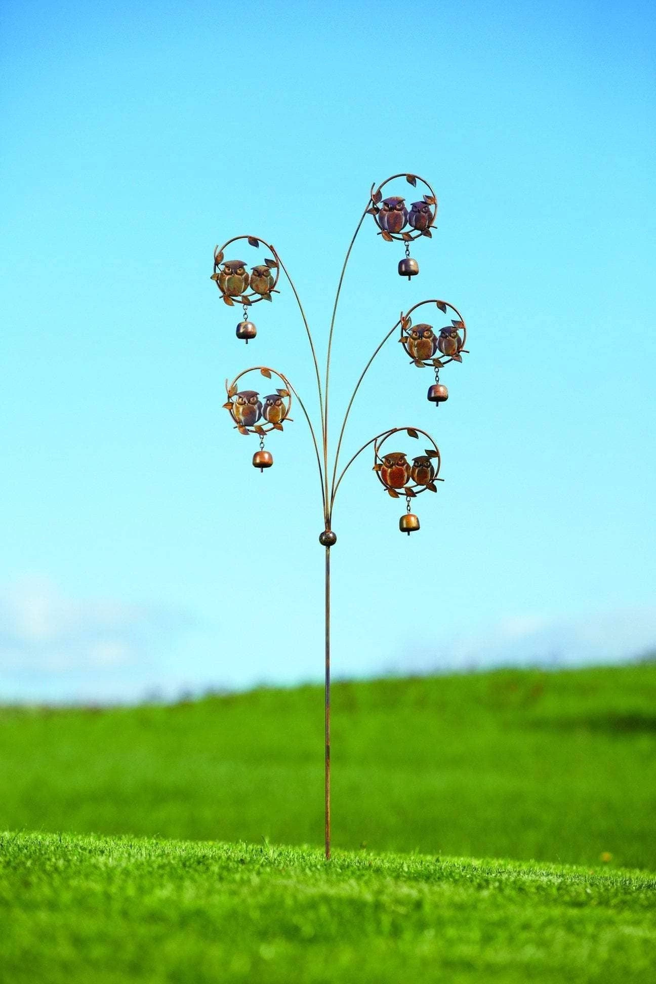 An entire flock of woodland birds to watch over your landscape! Our Flamed Owls and Bells Garden Stake features a total of ten beautifully sculpted owls, lots of curving, leafy branches, and five gorgeous bells that chime as breezes pass. Wherever you place this graceful piece, it’s sure to be admired! Like other Happy Gardens stakes, this one has been individually handcrafted, and will bring lasting beauty to your home’s landscape.