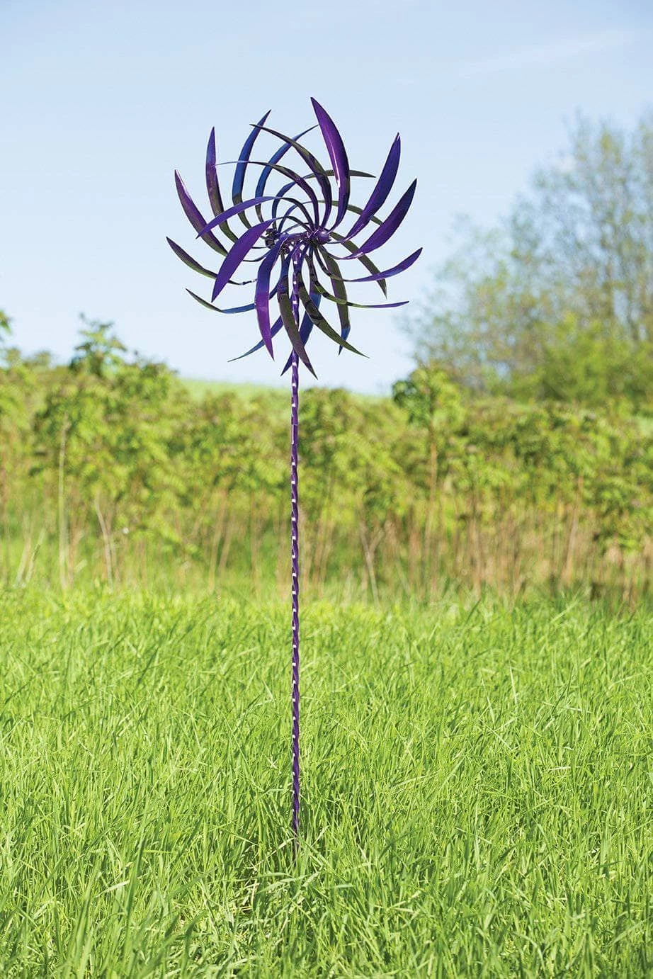 Bring a touch of fun to your landscape! Our Purple Pinwheel looks amazing on its own or when set up as part of a larger display. With dual spinners that catch breezes to create mesmerizing motion, this pinwheel features a staked base for sturdiness. Like all décor from our Happy Gardens collection, this fantastic piece has been individually handcrafted, and will bring lasting beauty to your home’s surrounding.