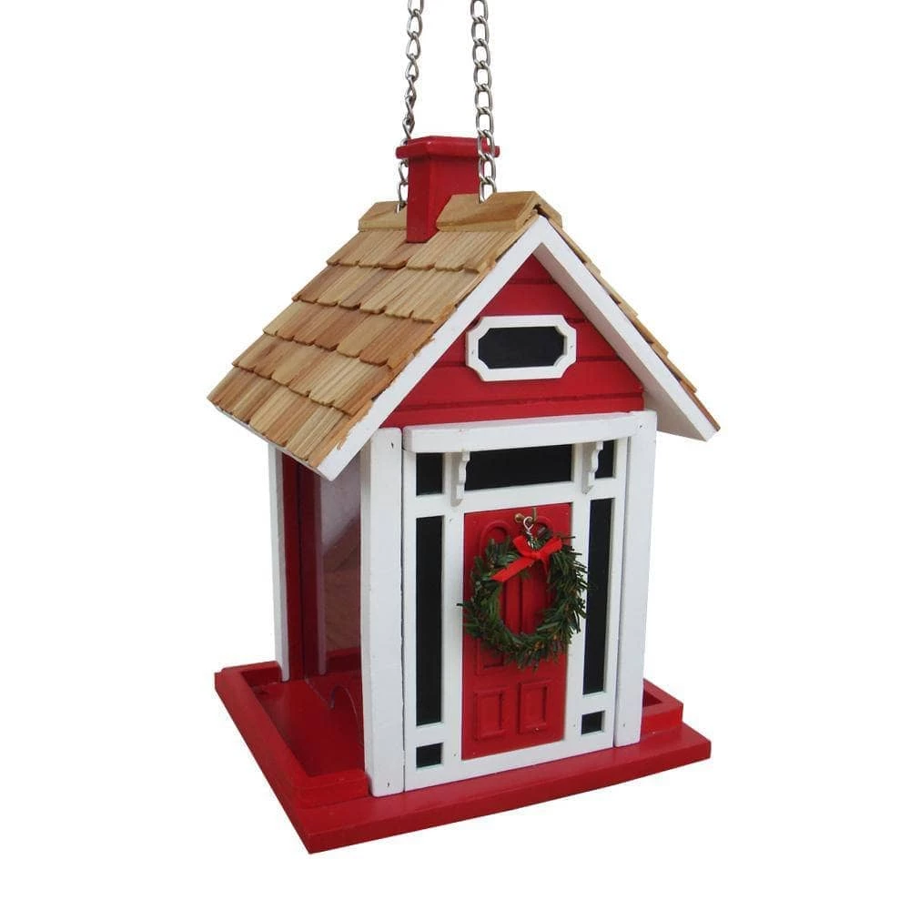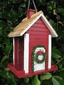 Holiday visitors of both the human and feathered varieties are sure to enjoy the Christmas Cottage Bird Feeder. Our fully functional bird feeder will fit right into any yuletide backyard. Top lifts-up to expose ample cavity for seed. Features a removable wreath. Topped off with a pine roof. Hangs from a sturdy galvanized metal chain.