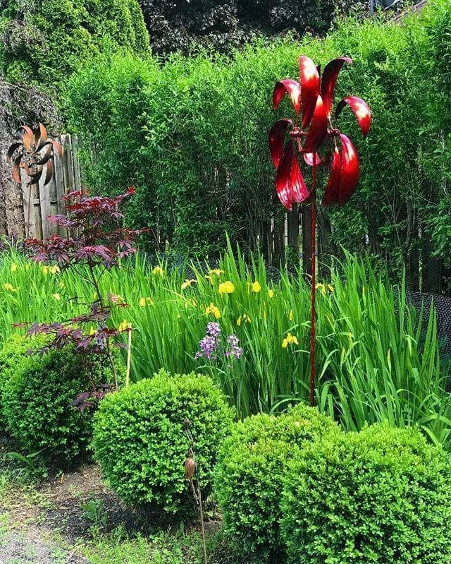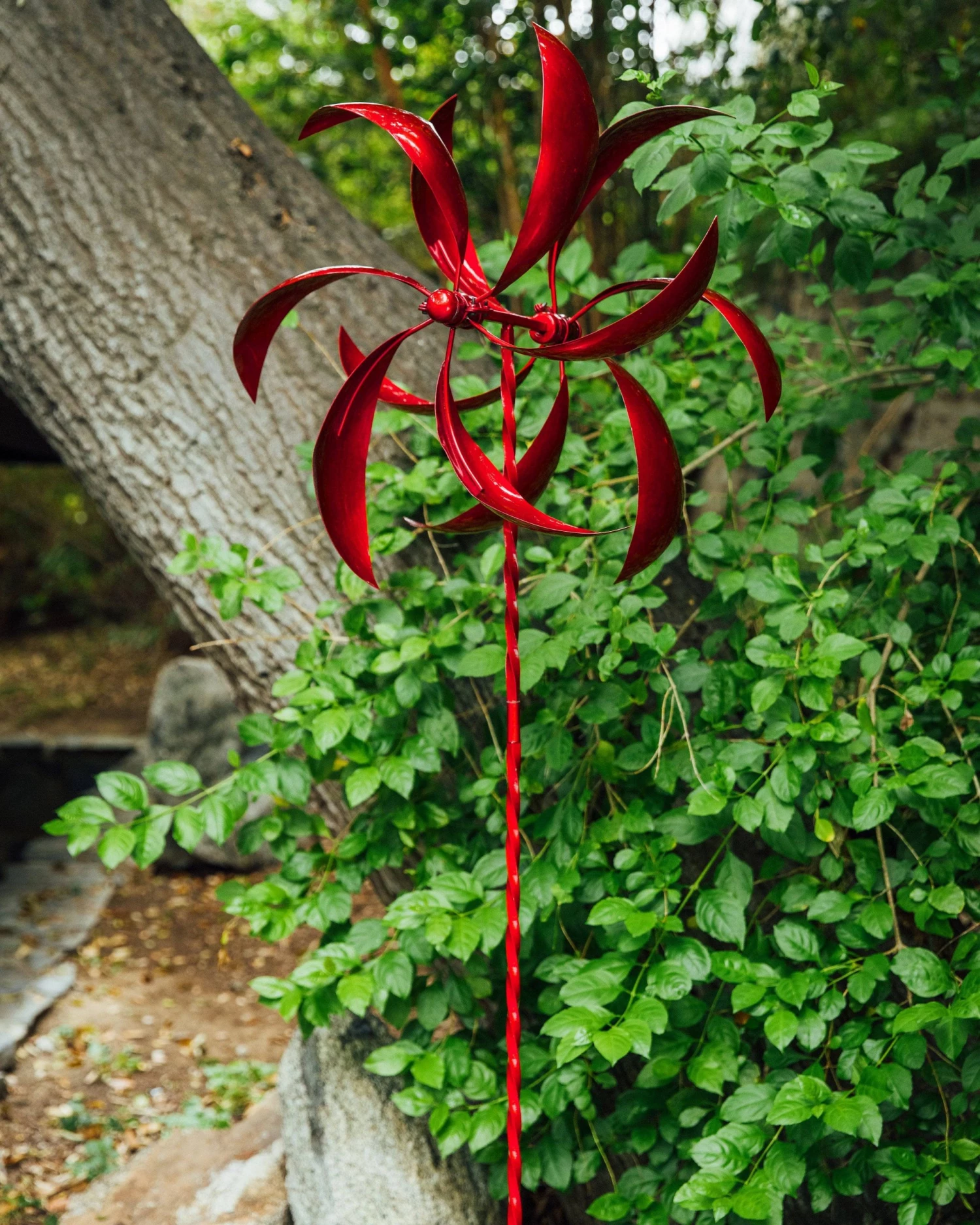 A brilliant finish and lively motion make our 22” Red Feather Spinner a marvelous choice for your lawn or garden. This vibrant kinetic sculpture spins wonderfully as breezes blow, bringing mesmerizing motion and a bright splash of color to your landscape. Like other Happy Gardens spinners, this one has been individually handcrafted, and will bring lasting beauty to your lawn, garden, or outdoor living space.