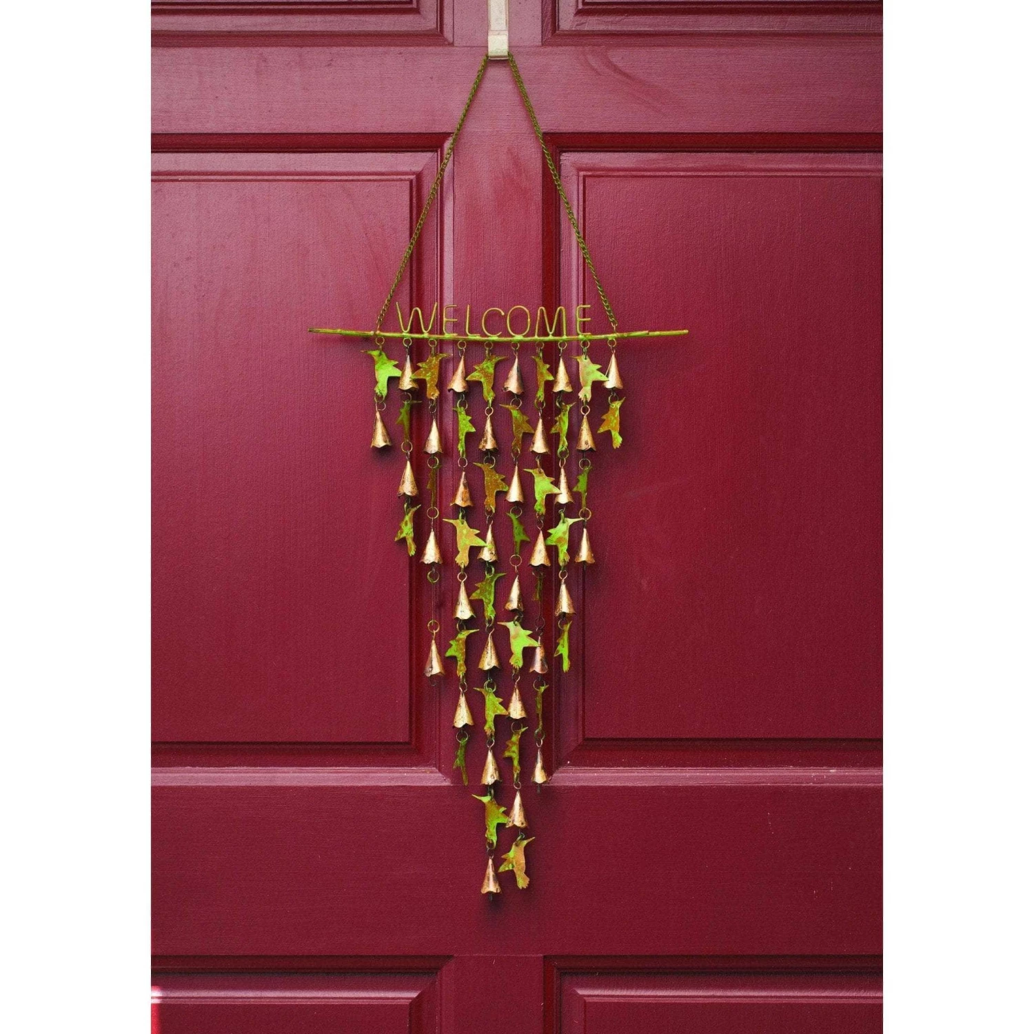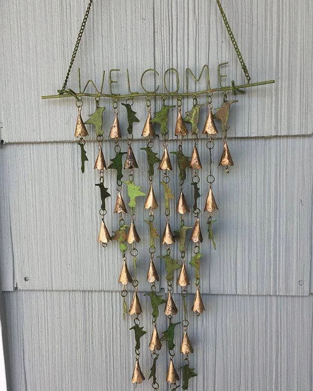 Talk about a warm welcome! Invite your friends and family into your home with our funky and bright Shimmering Bells with Hummingbirds wall hanging. This piece, which features green hummingbirds and copper-colored bells, is perfect for your front door. Offering soft melodies and a whole lot of cheer, this is the kind of statement piece that’ll change the whole vibe of your entryway. Like all of our shimmering bells collection, this wall hanging has been crafted by hand using high-quality materials.