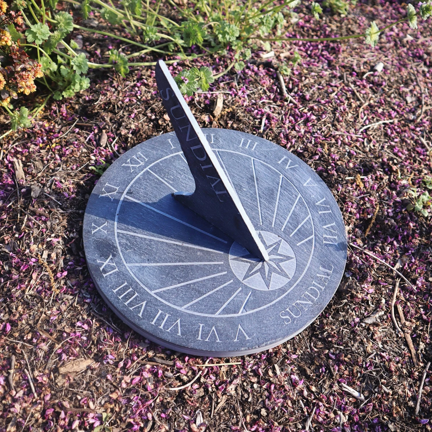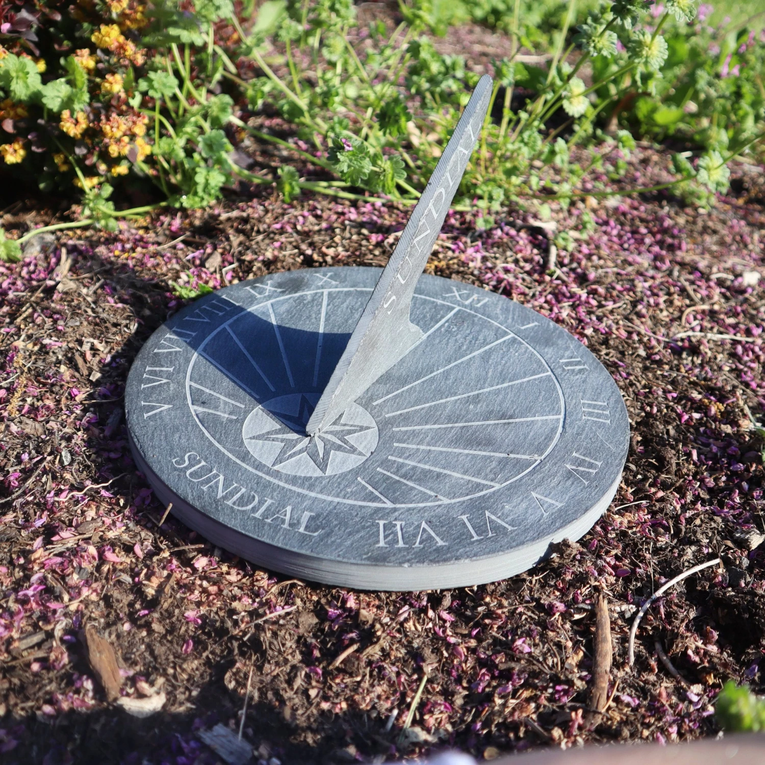 Celebrate the sun and the time you spend in it using this Esschert Design Gray Slate Sundial. Showcasing this sundial in your landscaping perfectly continues the enduring tradition of using the sun for timekeeping, furthered even more by its durable slate construction.