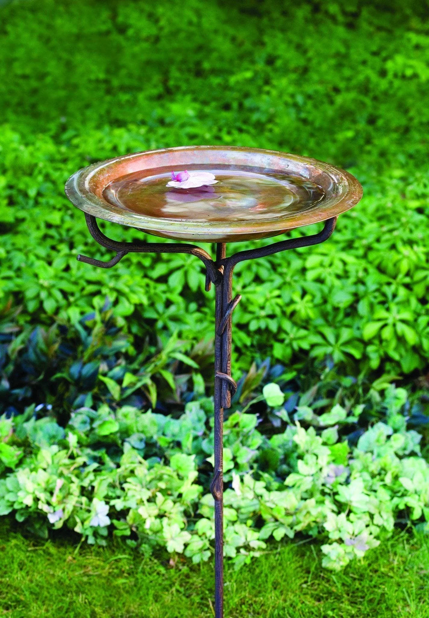 Fill the bowl and watch garden visitors enjoy your thoughtfulness! This bird bath features a shallow bowl with a flamed copper finish and a staked base in a whimsical twig motif, and it is versatile enough for a variety of settings. Wherever you place it, you’ll love the way it looks as well as its ability to attract winged wildlife. Like other Happy Gardens water features, this one has been individually handcrafted, and will bring lasting beauty to your landscape.