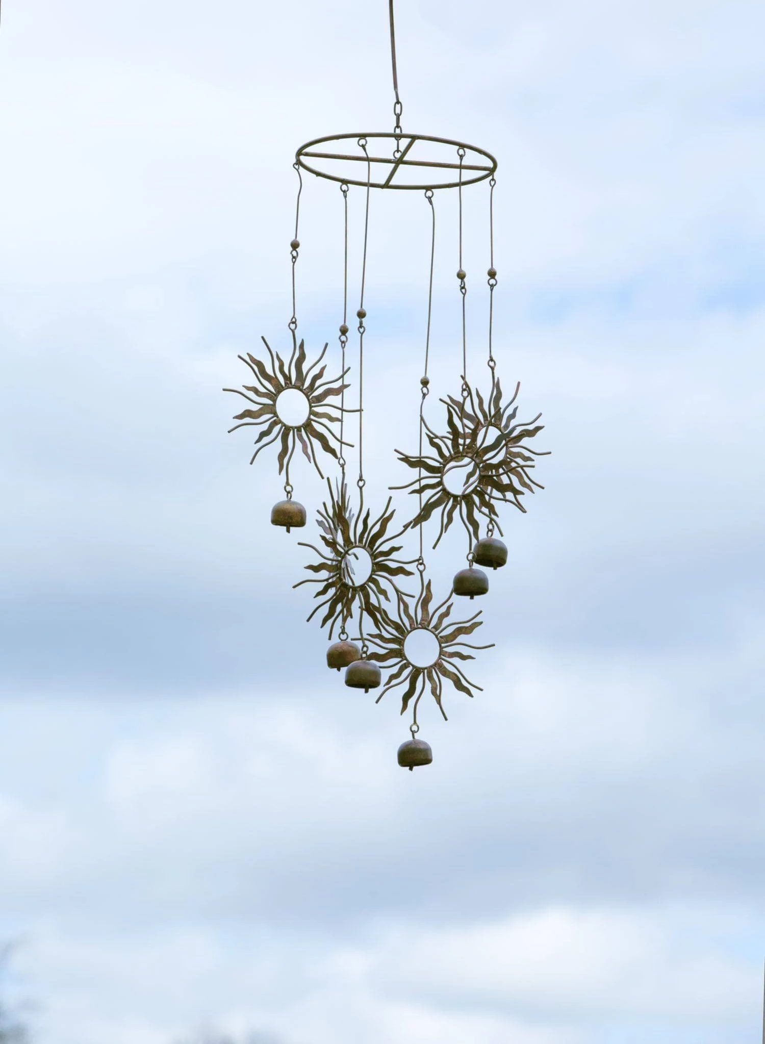 Add some sunshine to your garden with the Sun Mobile year-round! Handcrafted and stunning, this vibrant piece will brighten your garden even in the rainiest of seasons. Six suns gently cascade from around the frame, with bells dangling from each end, ready to ring at the slightest breeze. So why not add a little vitamin D to your day?