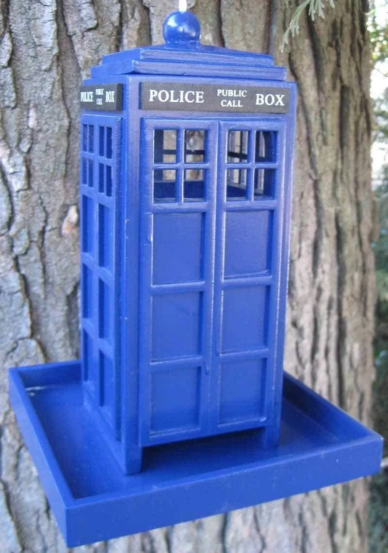 The iconic British Police Box in blue, functioned as a telephone kiosk or callbox located in a public place for the use of members of the police or for members of the public to contact the police. Unlike an ordinary callbox, its telephone is located behind a hinged door so it can be used from the outside, and the interior of the box is, in effect, a miniature police station for use by police officers.