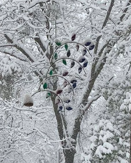 This Terra Cotta Multi Colored Leaf Mobile is the type of item we at Happy Gardens search high and low for. It’s unique, colorful and gorgeous. With four branches that turn from blue to violet to green, you’ll love how natural this mobile feels hanging from your favorite tree. These cool tones look especially brilliant in your greenest, most verdant outdoor spaces. Like all Happy Gardens mobiles, this one is handcrafted, and brings lasting beauty to your landscape.