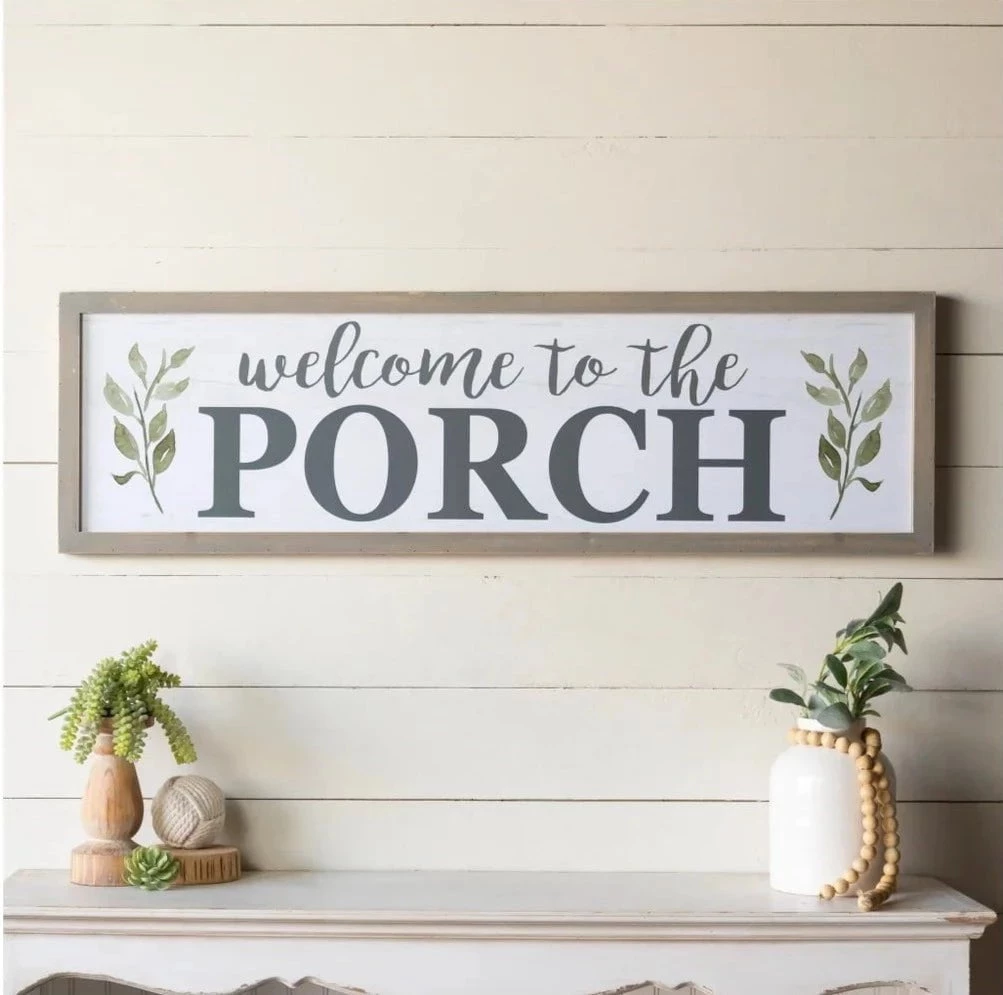Is there anything more idyllic than relaxing on a charming front porch? At Happy Gardens, we certainly don’t think so. In fact, we’re big believers in making the front porch as welcoming as possible. And there’s no grander way to do it than with this vintage-inspired, handcrafted porch sign.