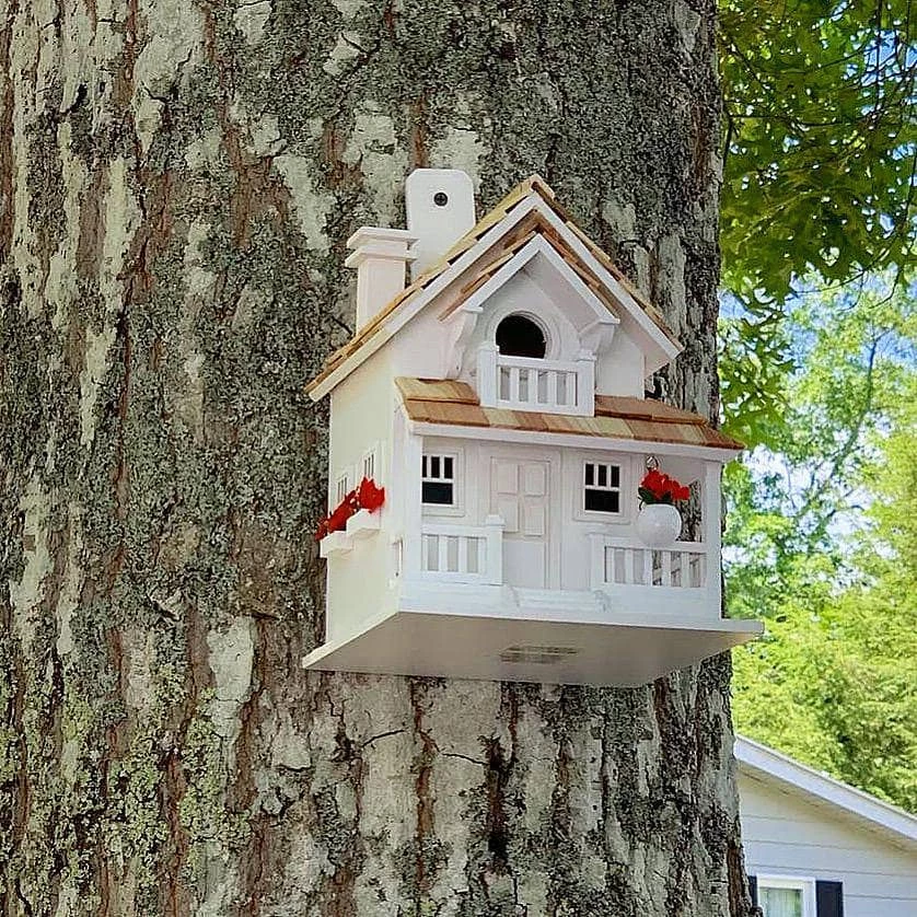 - DESIGNED TO MAKE BIRDS HAPPY – Our decorative bird houses are fully functional and intended for outdoor use and is hand crafted. A 1.25” opening, ventilation, drainage, an unpainted interior. The shingles protect the house from the elements, giving the birds and the nest a comfortable home. We do not use any pressure treated wood or apply any harmful chemicals and use an outdoor, non-toxic, water based paint.