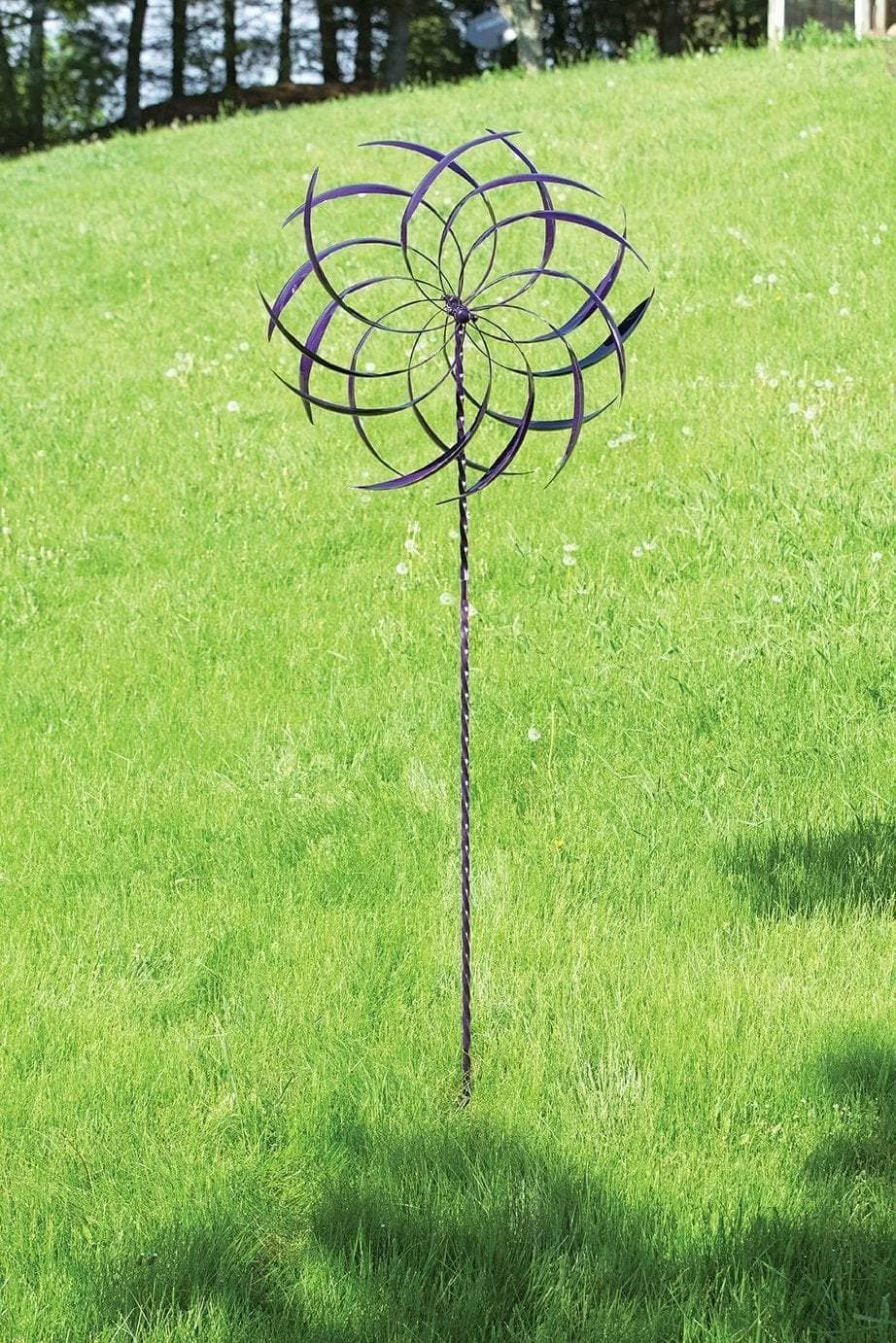 Beautiful color and multi-directional motion make our Purple Pinwheel Spinner a stunning addition to any landscape. This playful favorite measures an impressive 32 inches in diameter and features graceful arced blades that catch breezes as they move merrily from one place to the next. A twisted stake adds strength while providing a beautiful finishing touch. Like all spinners from our Happy Gardens collection, this one has been individually handcrafted, and will bring lasting beauty to your lawn or garden.