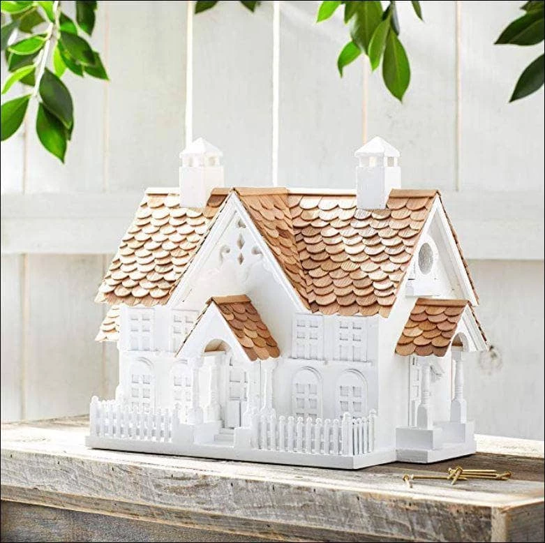- DESIGNED TO MAKE BIRDS HAPPY – Our decorative bird houses are fully functional and intended for outdoor use and is hand crafted. A 1.25” opening, ventilation, drainage, an unpainted interior. The shingles protect the house from the elements, giving the birds and the nest a comfortable home. We do not use any pressure treated wood or apply any harmful chemicals and use an outdoor, non-toxic, water based paint.