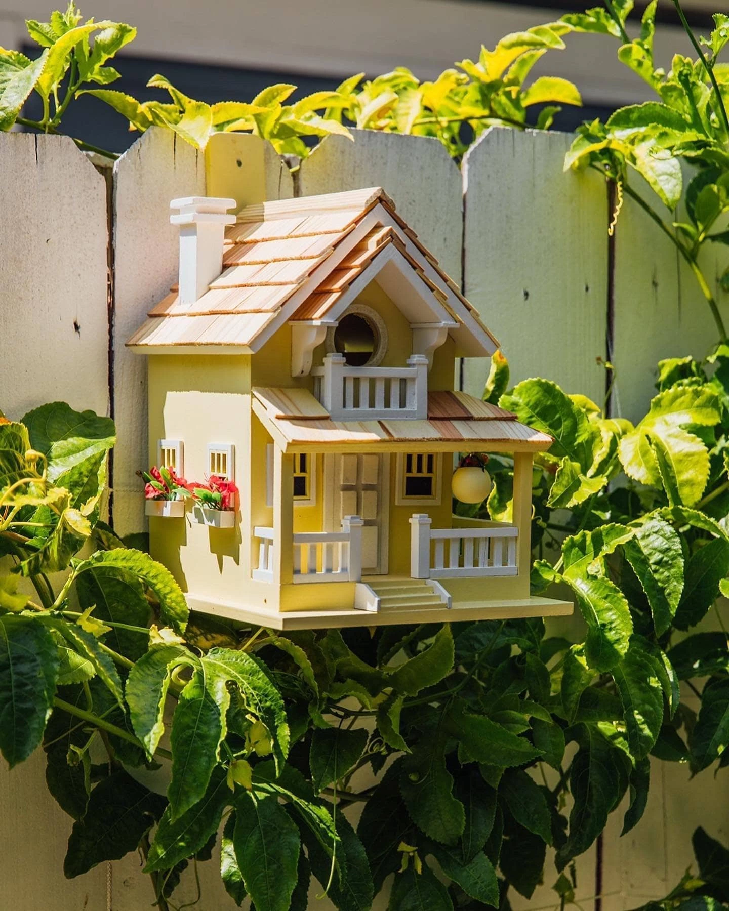 - DESIGNED TO MAKE BIRDS HAPPY – Our decorative bird houses are fully functional and intended for outdoor use and is hand crafted. A 1.25” opening, ventilation, drainage, an unpainted interior. The shingles protect the house from the elements, giving the birds and the nest a comfortable home. We do not use any pressure treated wood or apply any harmful chemicals and use an outdoor, non-toxic, water based paint.